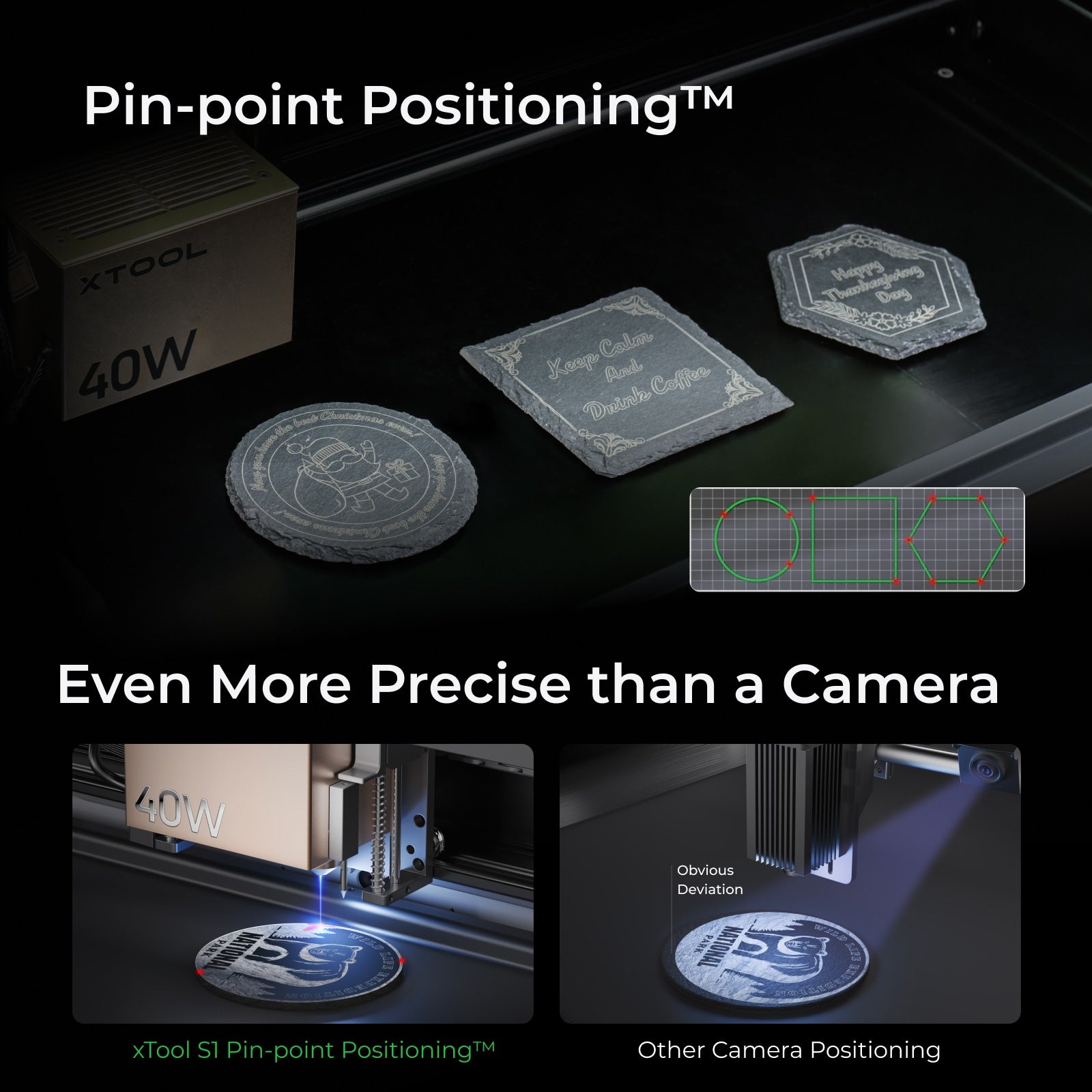 Discover xTool's unique Twin-point positioning technology. Achieving pattern placement with precision rivaling camera methods, all with unmatched ease and accuracy.